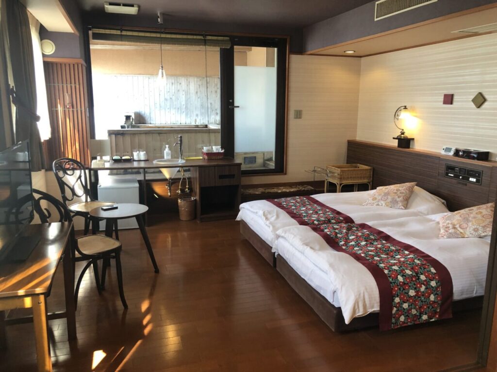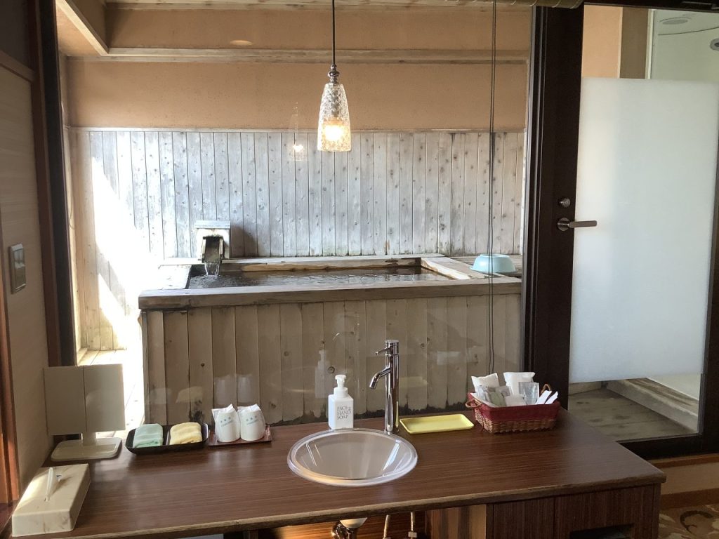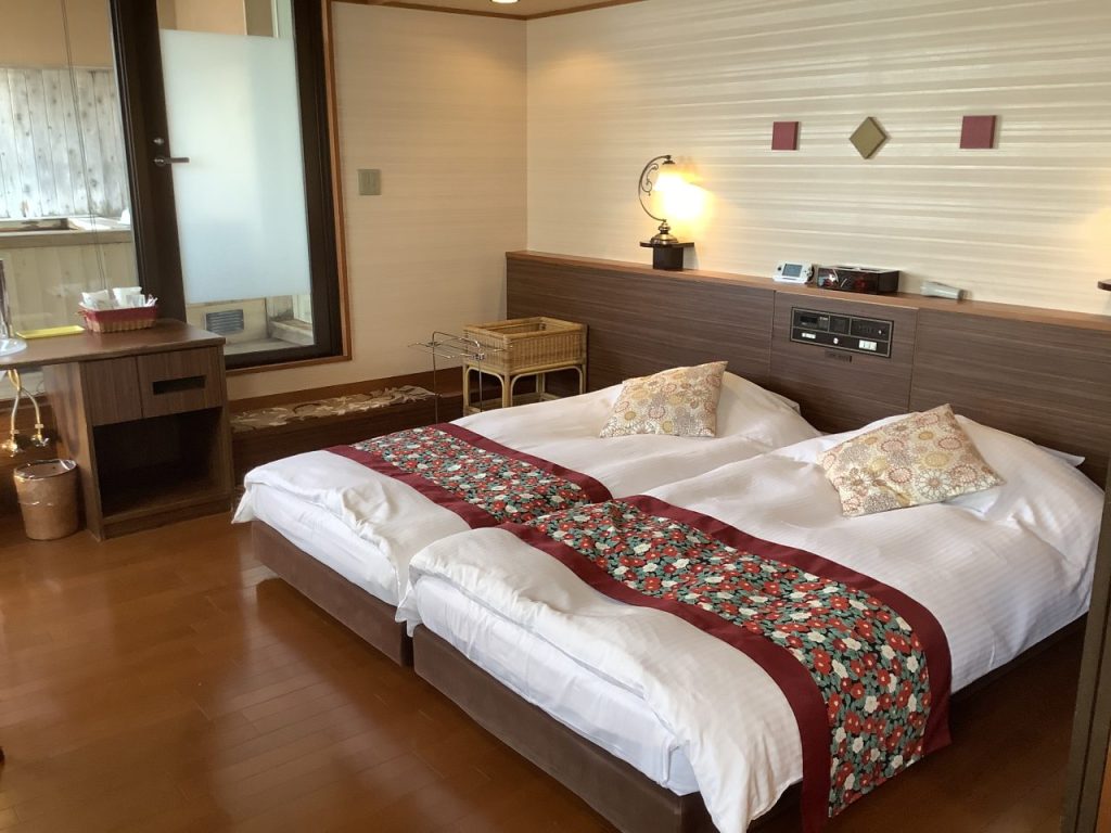 今回は客室露天風呂付きのツインルームを利用させていただきました。