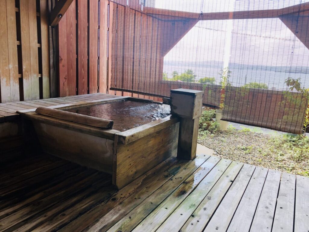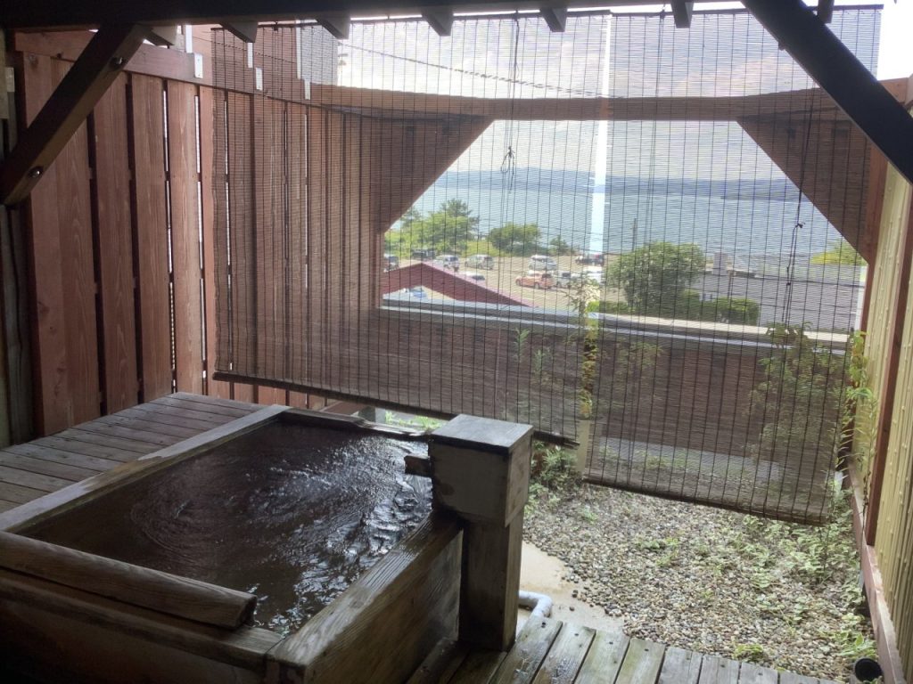 露天風呂側に出てみるとこんな感じ。海に面しているお宿なので、広々とした海を眺めながらゆったりと温泉に入れます。