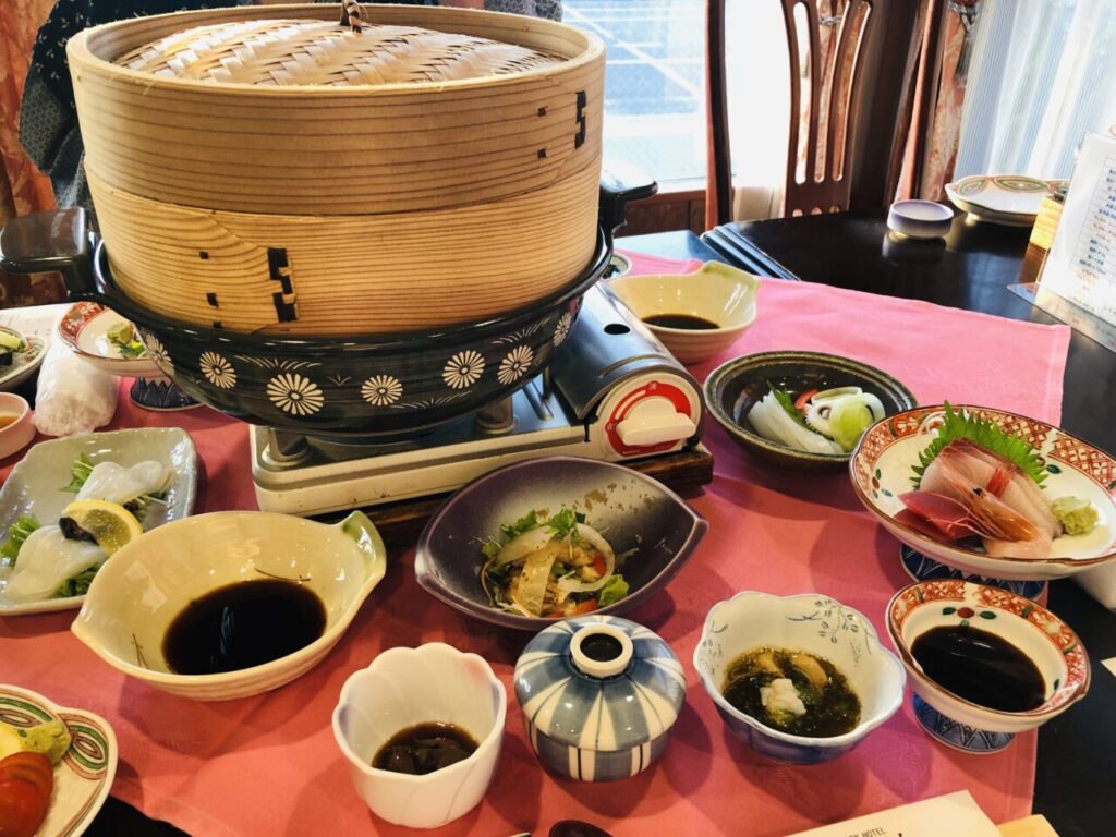 十番館さん名物のせいろ蒸しとを中心とした、豪華な夕食をいただきました!