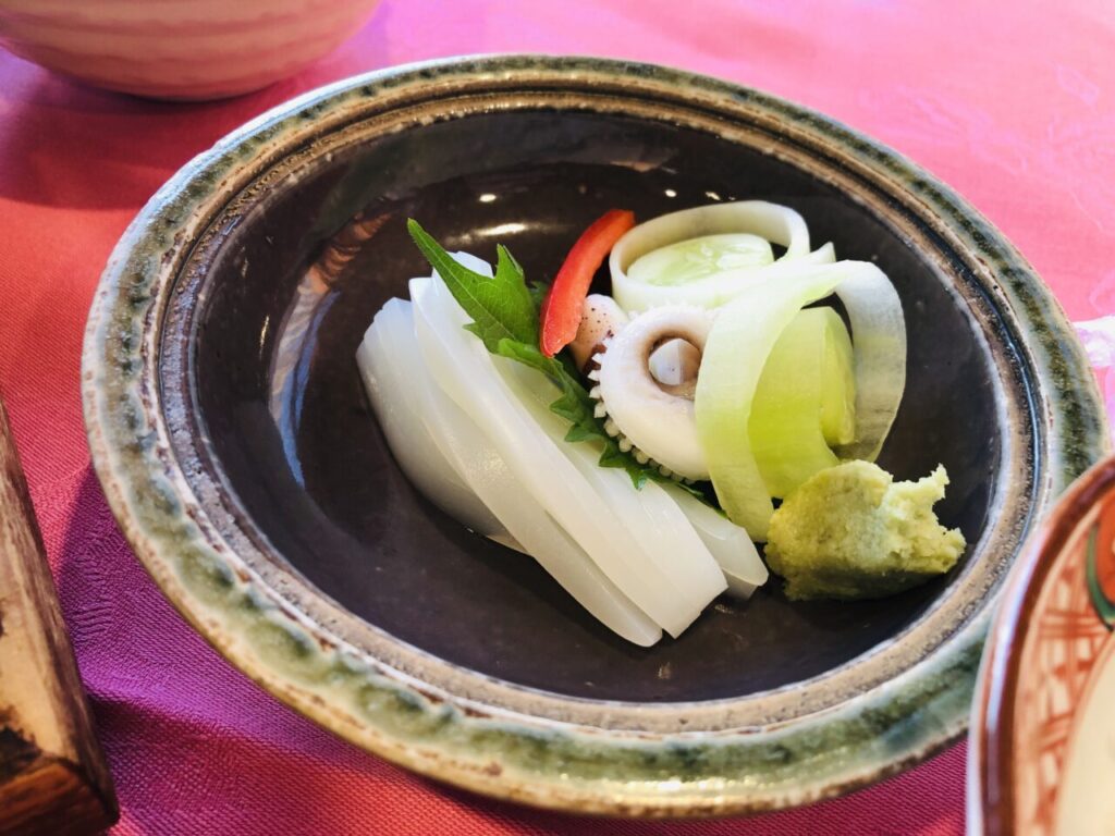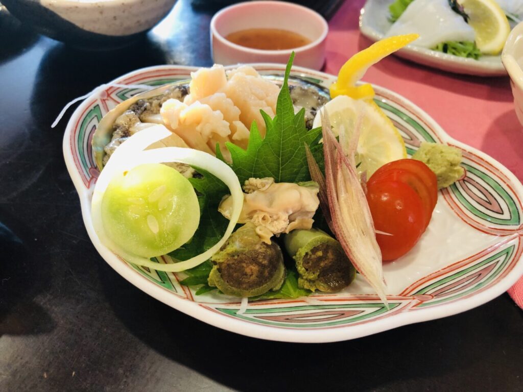 アワビのお造りです。新鮮でコリコリしていて香りも良く、とても美味しいものでした。