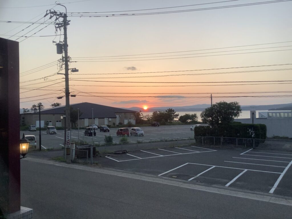 食事会場からは綺麗な夕日が見れました。