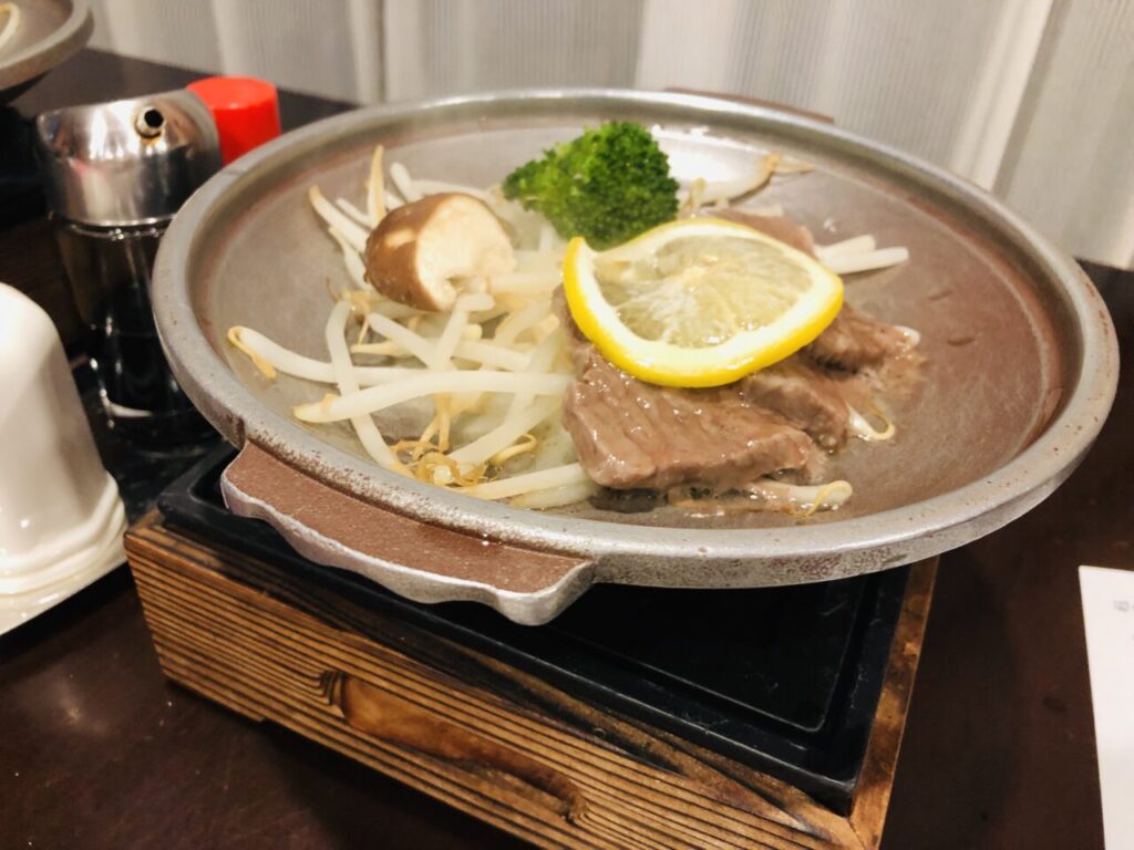 黒毛和牛の陶板焼きです。