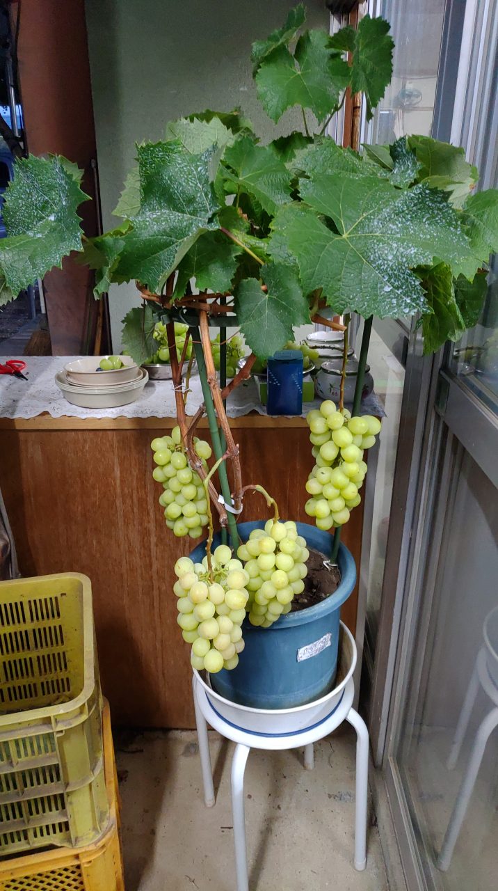 鉢植えで育てられているマスカットもありました。赤白園公式サイトさんでは、「シャインマスカットの盆栽」として紹介されていました。とても可愛いものです。